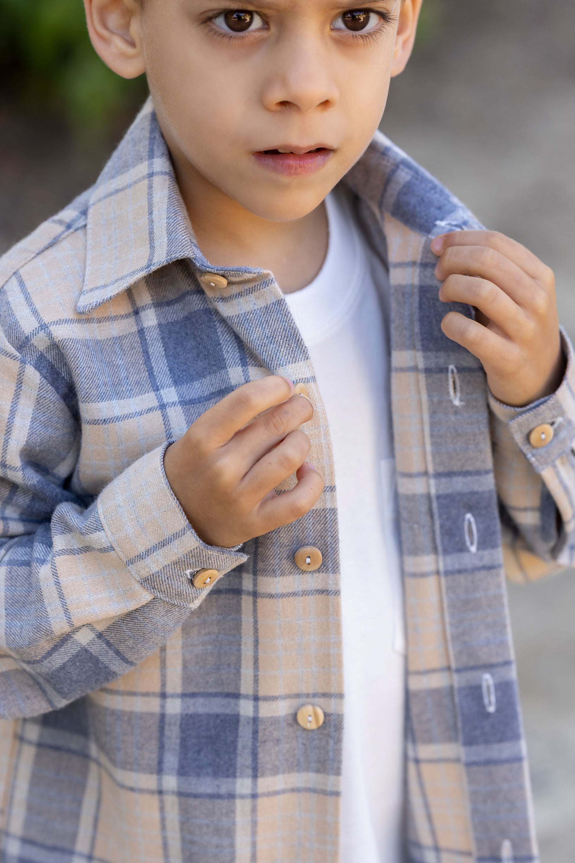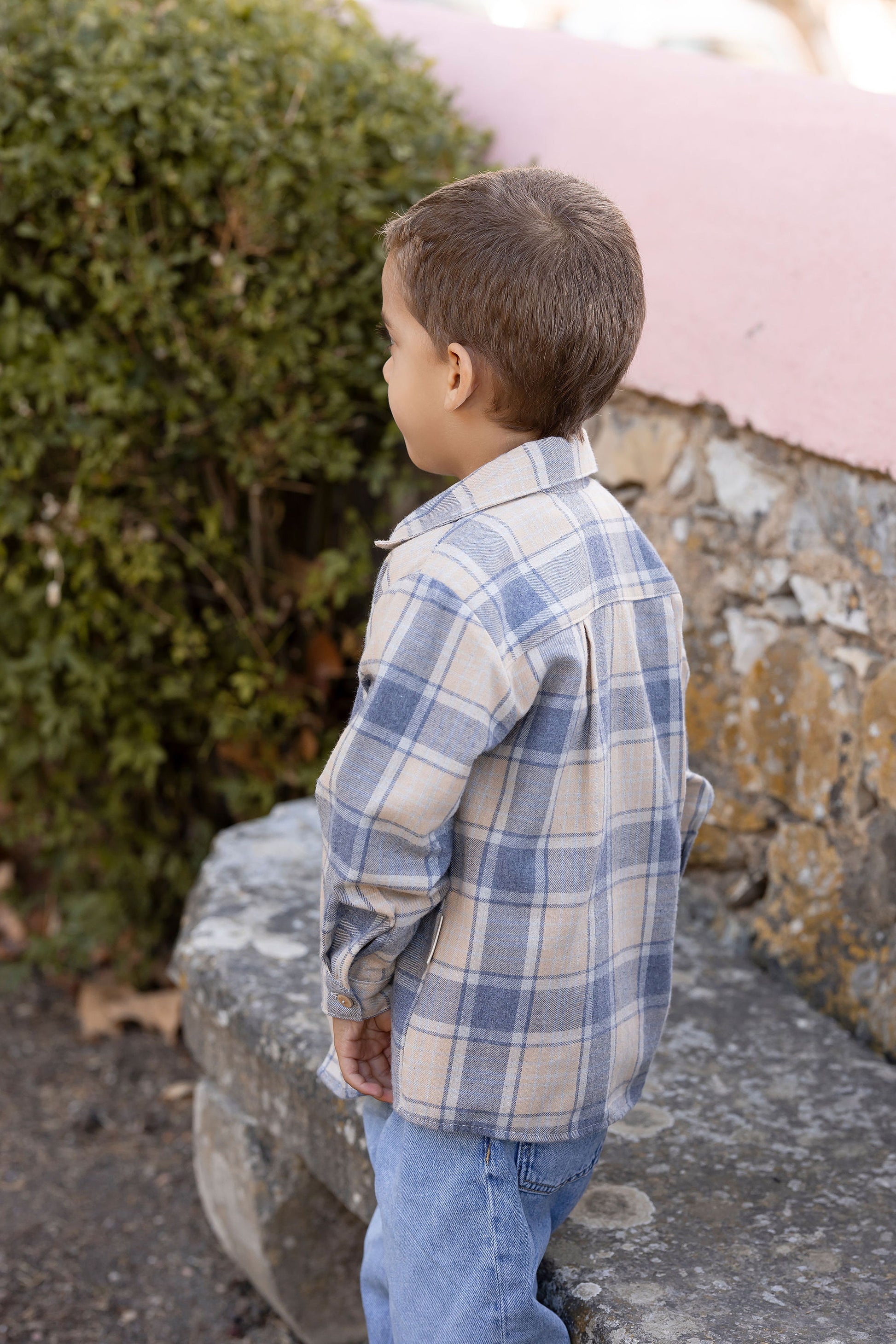 Our blue and yellow plaid shirt is the perfect timeless piece for boys' wardrobes. Made from 100% soft cotton, it's warm and comfortable, ideal for autumn/winter days. The classic pattern in soft tones easily matches jeans or dressier trousers, allowing you to create everything from casual looks to dressier outfits. A versatile and durable piece, designed to stylishly accompany all occasions.