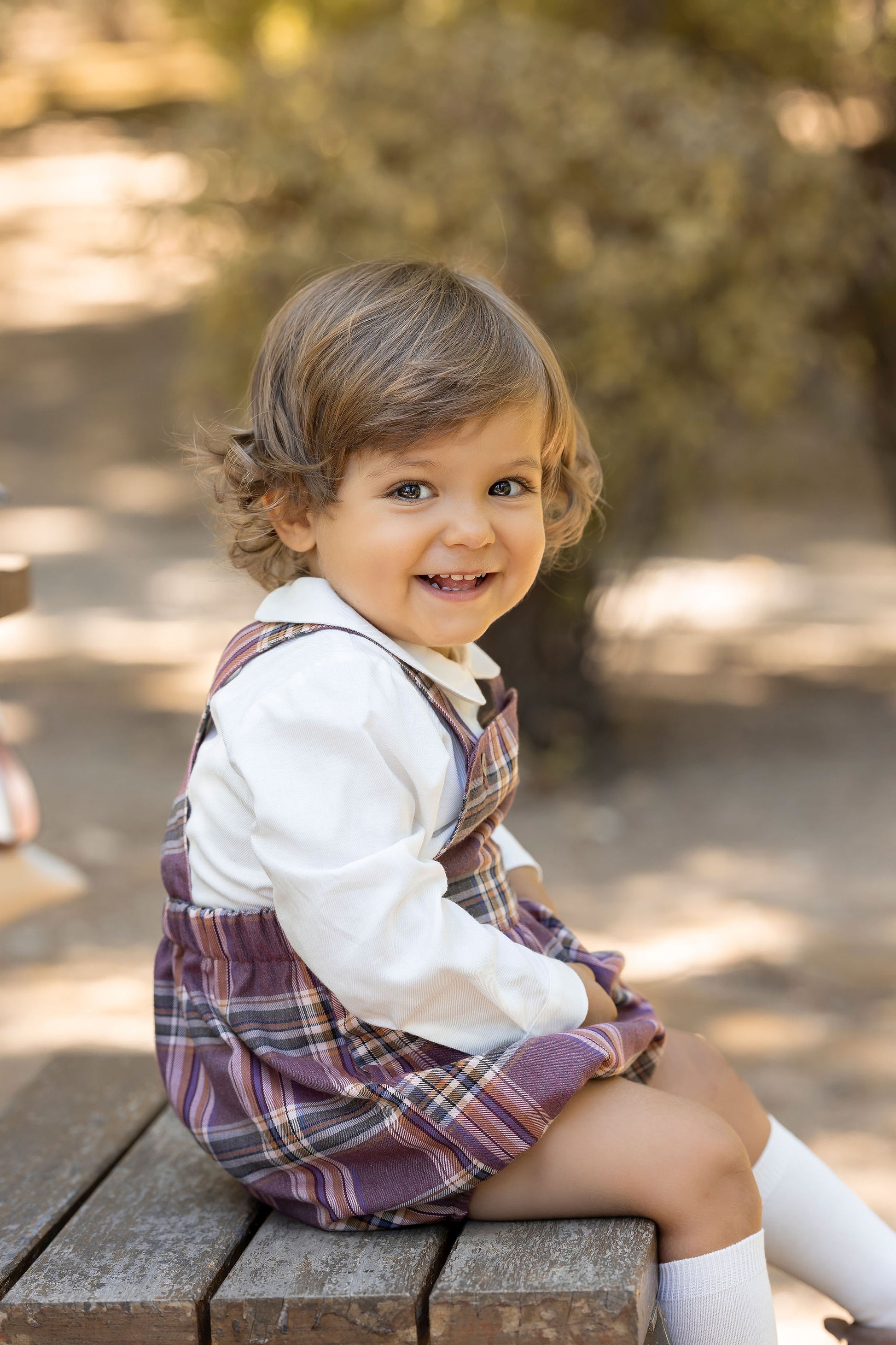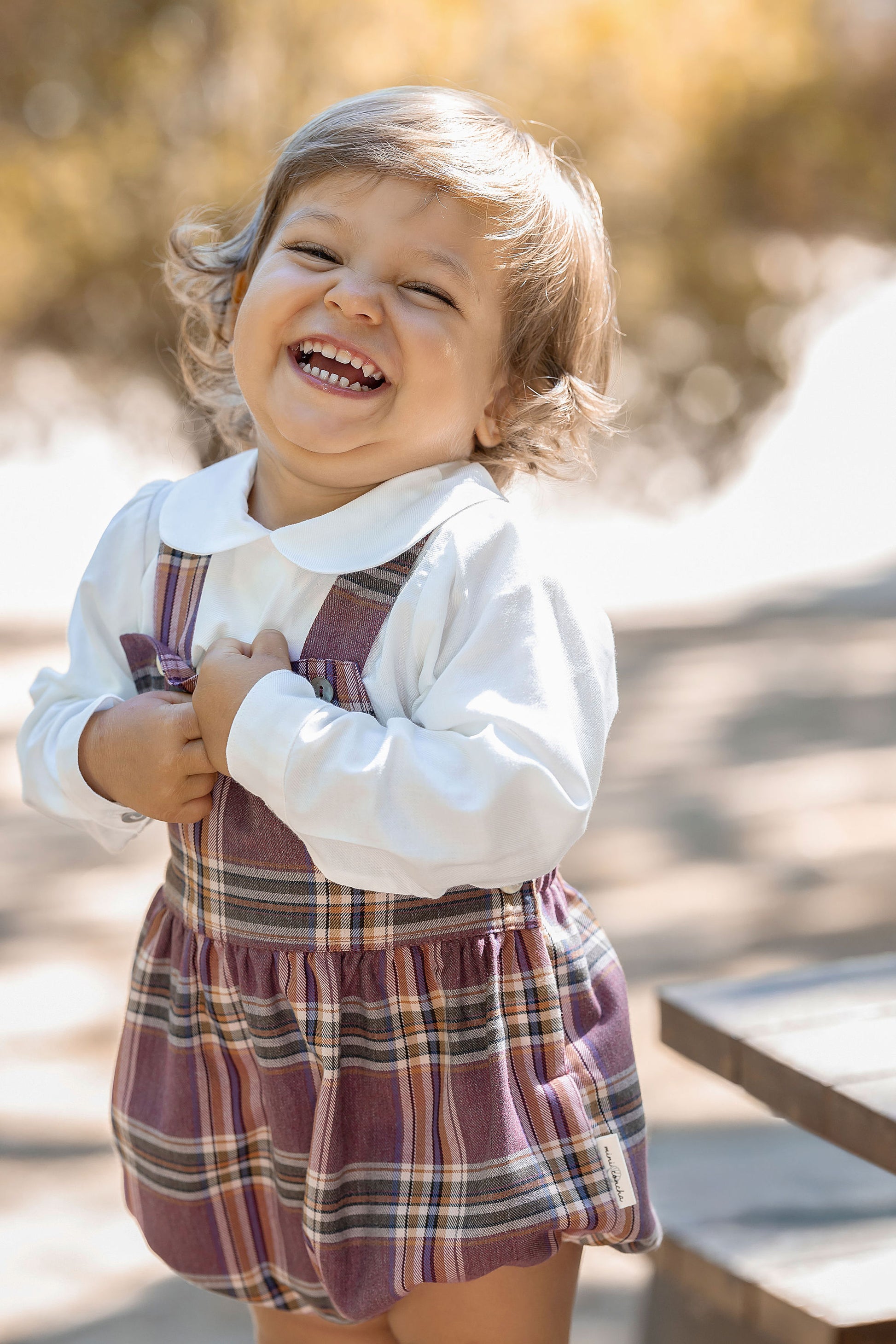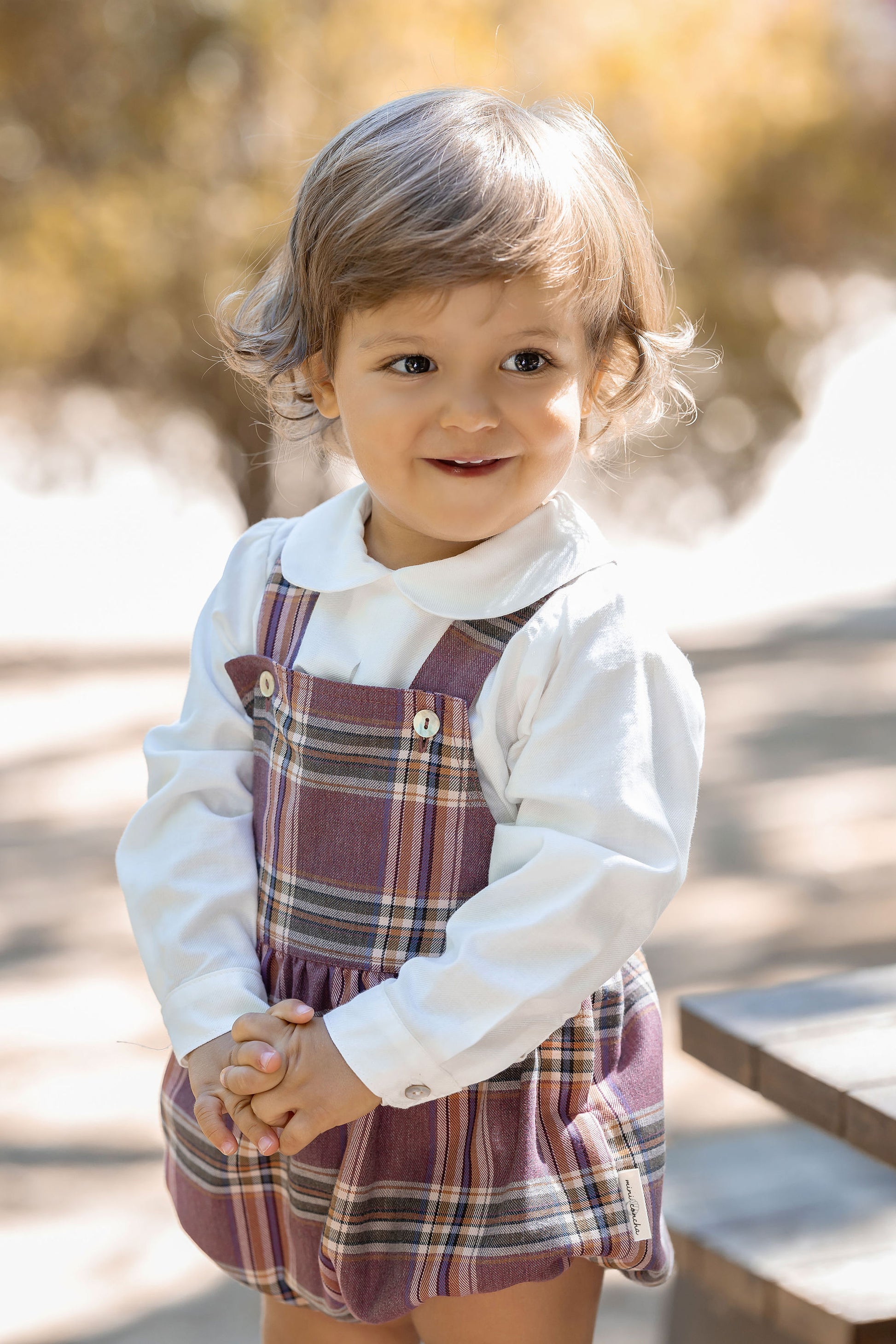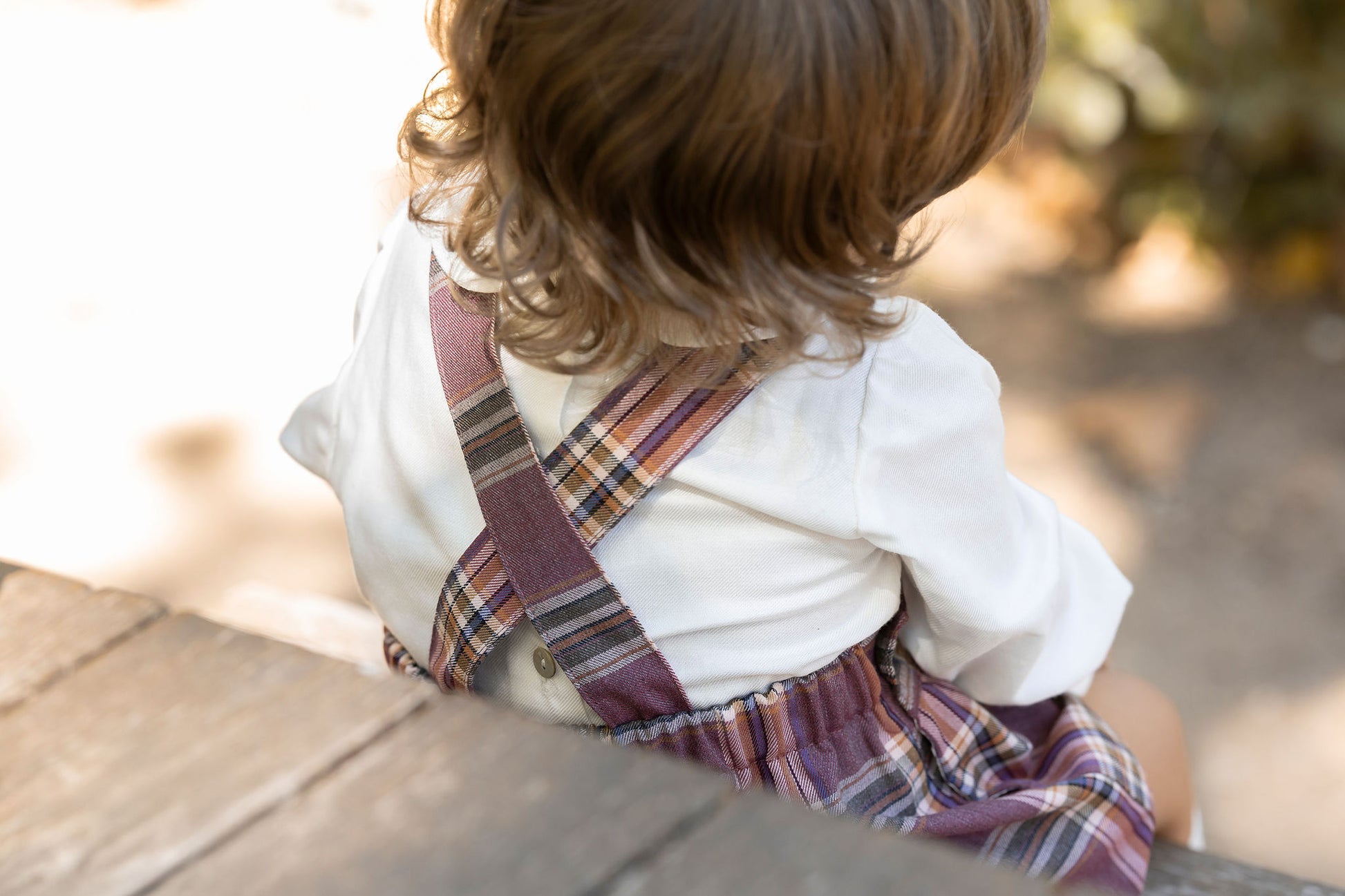 Fofo de alças em padrão xadrez, pensado para dias de outono e inverno com muito conforto. Confeccionado em tecido macio de fibras naturais, é forrado no interior para maior aconchego. As alças cruzam nas costas e ajustam-se com botões madrepérola, garantindo praticidade no vestir. O cós elástico oferece liberdade de movimentos e um ajuste confortável, perfeito para acompanhar os mais pequenos nas suas aventuras.