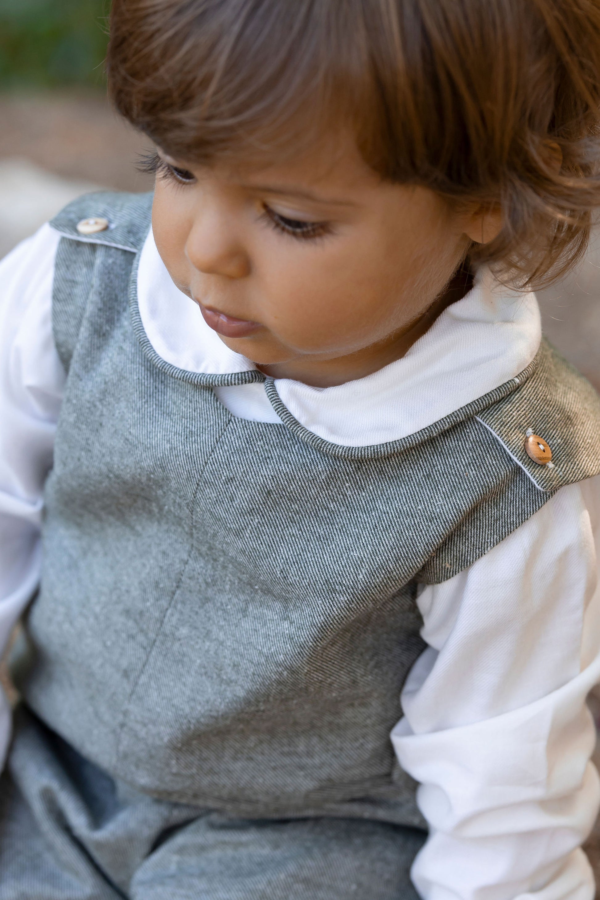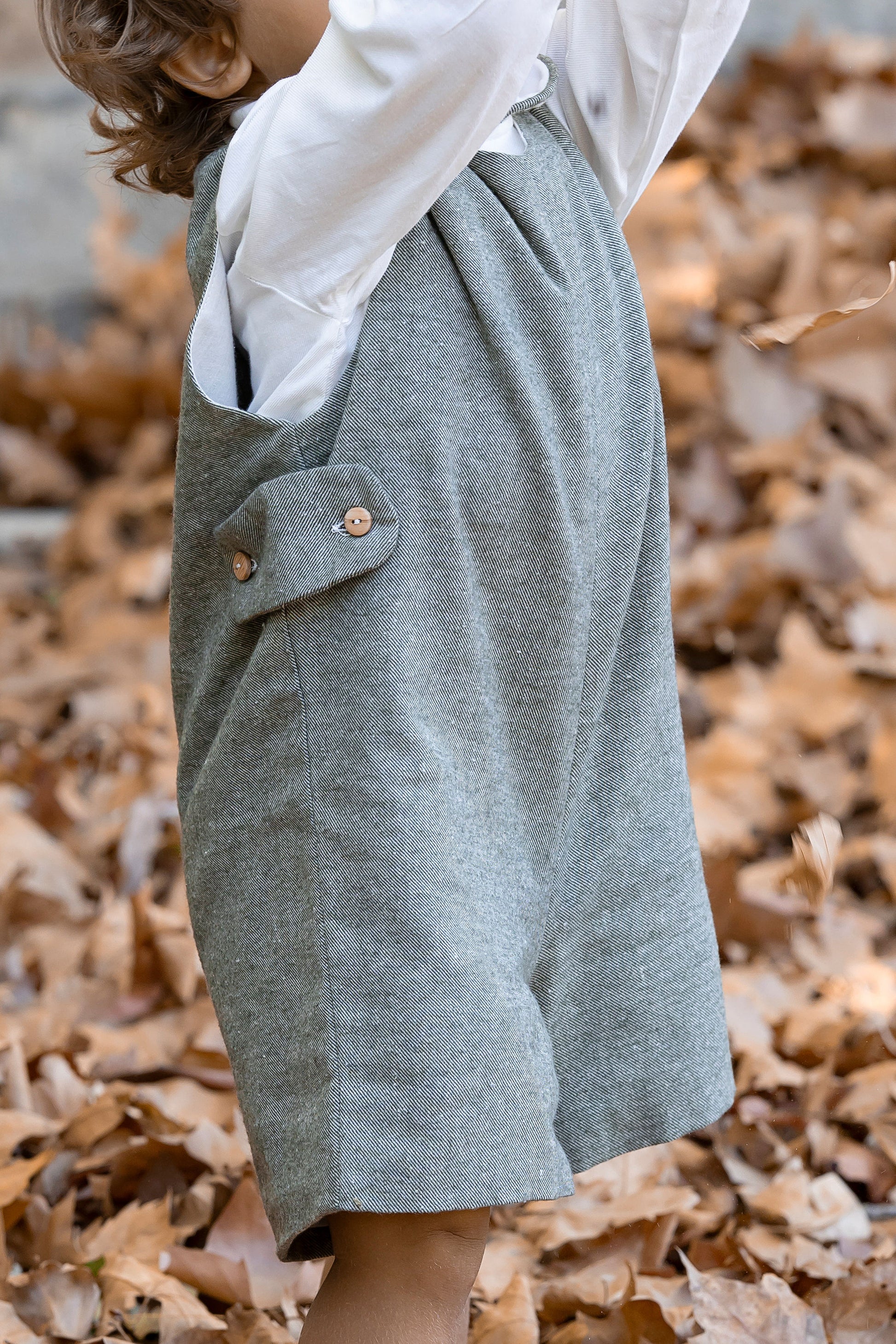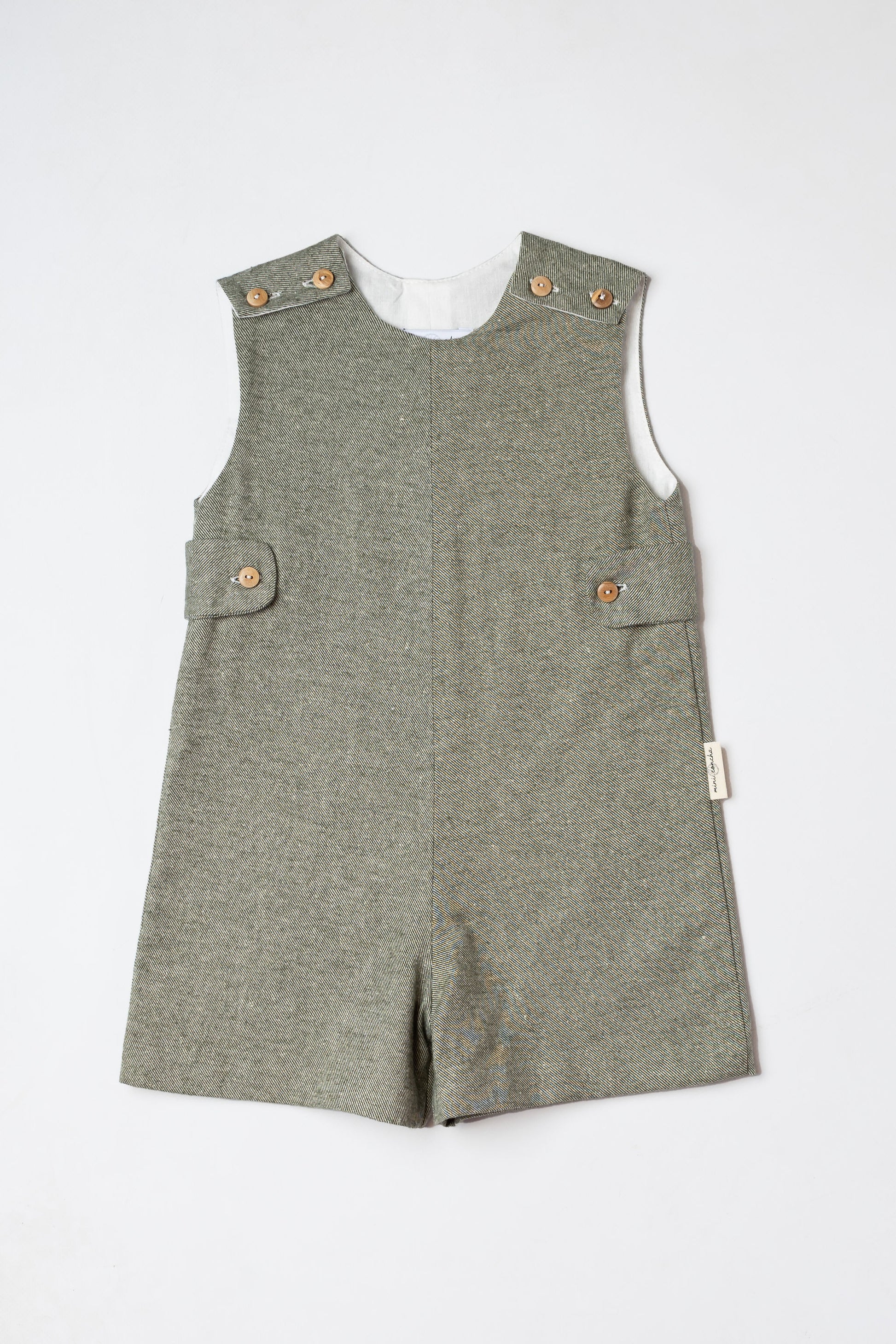 Macacão unissexo em tecido 100% algodão verde, pensado para oferecer conforto e estilo. Com forro interior suave e botões de madeira nas alças. É uma peça prática, duradoura e versátil, ideal para todas as ocasiões.