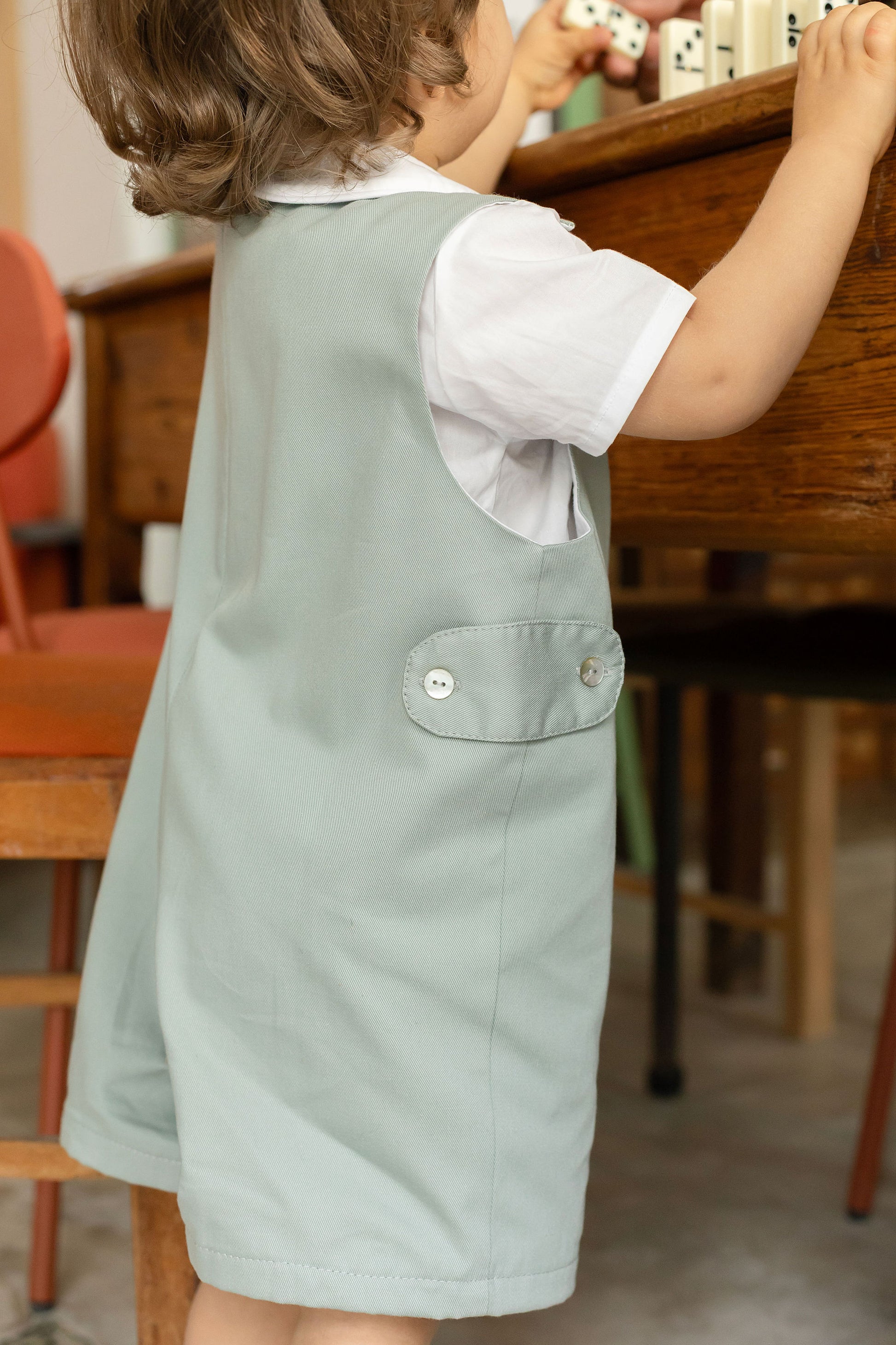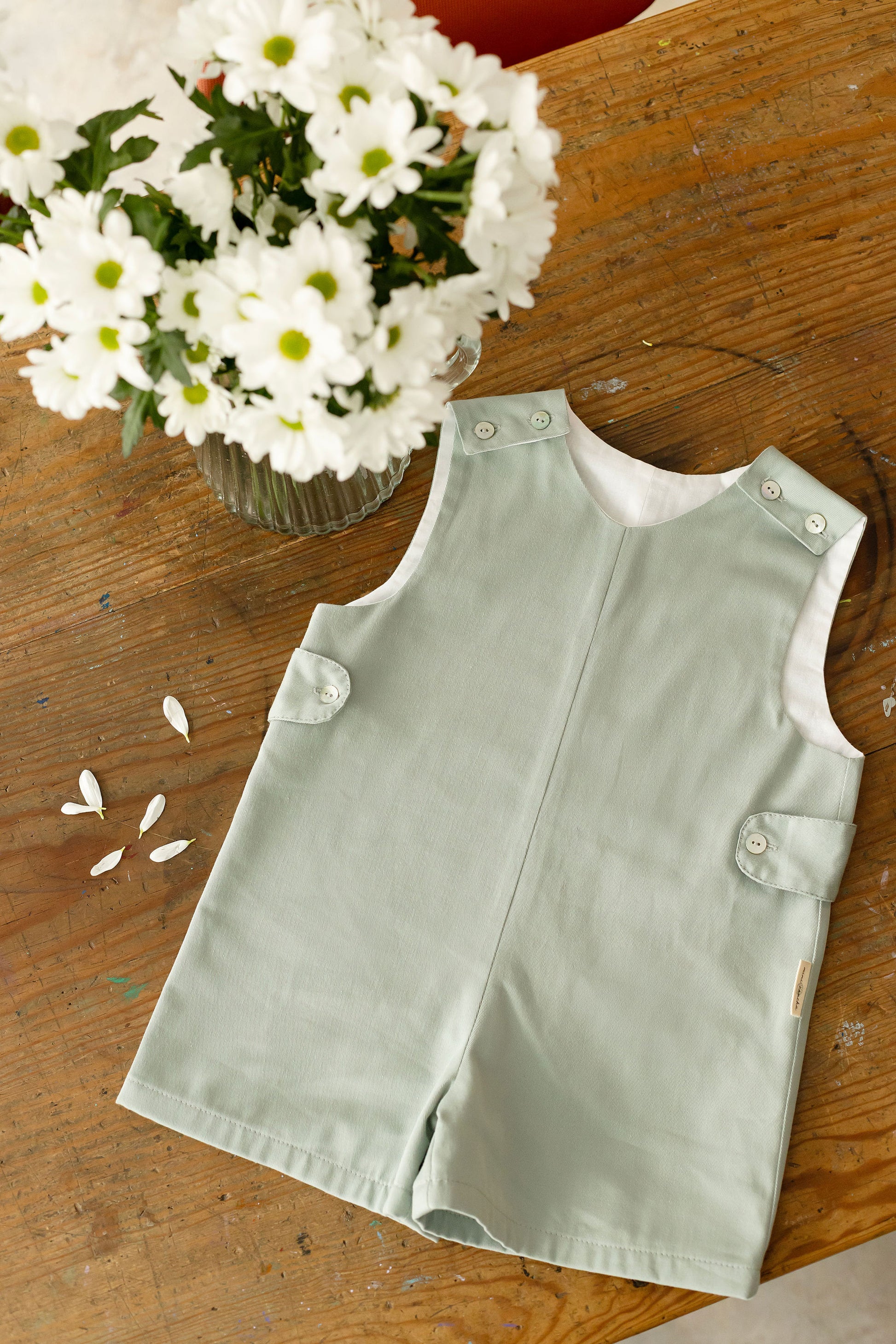 Macacão unissexo em sarja, leve, fresco e confortável.